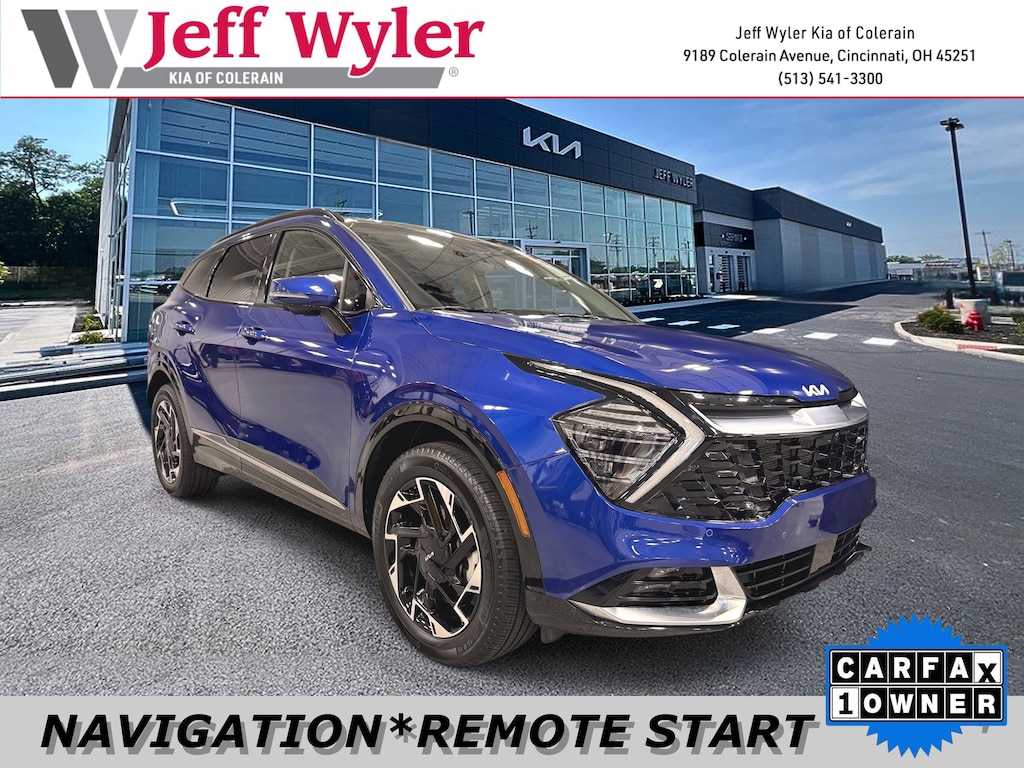 Jeff Wyler Kia of Colerain is honored to offer this superb 2025 Kia Sportage SX-Prestige in Sapphire Blue. 4-Wheel Disc Brakes, 8 Speakers, ABS brakes, Air Conditioning, Alloy wheels, AM/FM radio: SiriusXM, Apple CarPlay & Android Auto, Auto High-beam Headlights, Automatic temperature control, Brake assist, Bumpers: body-color, Compass, Delay-off headlights, Driver door bin, Driver vanity mirror, Dual front impact airbags, Dual front side impact airbags, Electronic Stability Control, Emergency communication system, Four wheel independent suspension, Front anti-roll bar, Front Bucket Seats, Front Center Armrest, Front dual zone A/C, Front fog lights, Front reading lights, Fully automatic headlights, harman/kardon® Speakers, Heated & Ventilated Front Bucket Seats, Heated door mirrors, Heated front seats, Heated steering wheel, Illuminated entry, Leather Shift Knob, Leather steering wheel, Low tire pressure warning, Memory seat, Navigation System, Occupant sensing airbag, Outside temperature display, Overhead airbag, Overhead console, Panic alarm, Passenger door bin, Passenger vanity mirror, Power door mirrors, Power driver seat, Power Liftgate, Power moonroof, Power passenger seat, Power steering, Power windows, Premium Leatherette Seat Trim, Radio: AM/FM/HD Premium Audio System, Rain sensing wipers, Rear anti-roll bar, Rear reading lights, Rear seat center armrest, Rear side impact airbag, Rear window defroster, Rear window wiper, Remote keyless entry, Security system, Speed control, Speed-sensing steering, Split folding rear seat, Spoiler, Steering wheel mounted audio controls, Tachometer, Telescoping steering wheel, Tilt steering wheel, Traction control, Trip computer, Turn signal indicator mirrors, Variably intermittent wipers, Ventilated front seats, and Wheels: 19" x 7.5J Gloss Black Alloy Our PRE-OWNED vehicles are put through a rigorous 167- POINT QUALITY ASSURANCE INSPECTION along with an average amount of over $1,400.00 SPENT to recondition each vehicle so we can be sure to deliver you the highest quality vehicle like you deserve! ***ONLINE PRICE DOES NOT INCLUDE WYLER FAMILY FIRST PACKAGE***