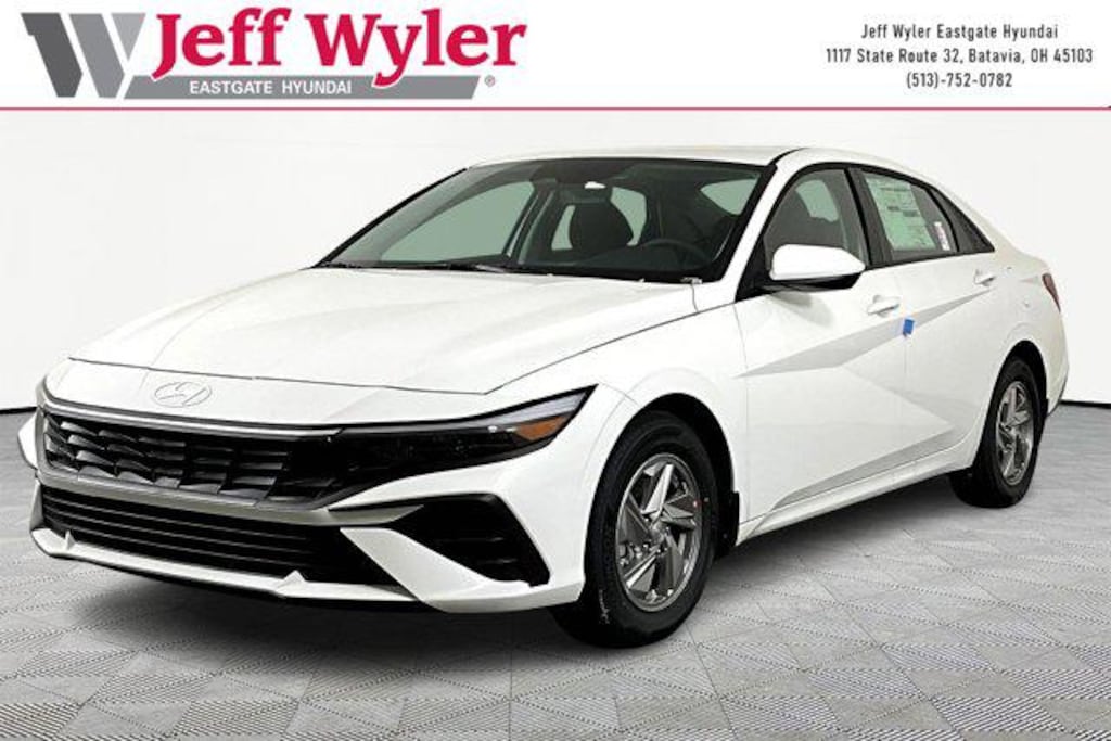 Serenity White 2026 Hyundai Elantra SE I4 FWD CVT 31/40 City/Highway MPG Jeff Wyler Eastgate Auto Mall is honored to offer this gorgeous-looking 2026 Hyundai Elantra SE in Serenity White. Well equipped with: Option Group 01, 15" x 6.0J Alloy Wheels, 4-Wheel Disc Brakes, 6 Speakers, ABS brakes, Air Conditioning, Alloy wheels, AM/FM radio, Apple CarPlay & Android Auto, Auto High-beam Headlights, Brake assist, Bumpers: body-color, Carpeted Floor Mats, Delay-off headlights, Driver door bin, Driver vanity mirror, Dual front impact airbags, Dual front side impact airbags, Electronic Stability Control, Exterior Parking Camera Rear, Front anti-roll bar, Front Bucket Seats, Front Center Armrest, Front reading lights, Front wheel independent suspension, Fully automatic headlights, Illuminated entry, Low tire pressure warning, Occupant sensing airbag, Outside temperature display, Overhead airbag, Overhead console, Panic alarm, Passenger door bin, Passenger vanity mirror, Power door mirrors, Power steering, Power windows, Premium Cloth Seat Trim, Radio: AM/FM/HD Display Audio, Rear side impact airbag, Rear window defroster, Remote keyless entry, Security system, Speed control, Speed-sensing steering, Steering wheel mounted audio controls, Tachometer, Telescoping steering wheel, Tilt steering wheel, Traction control, Trip computer, and Variably intermittent wipers. 31/40 City/Highway MPG