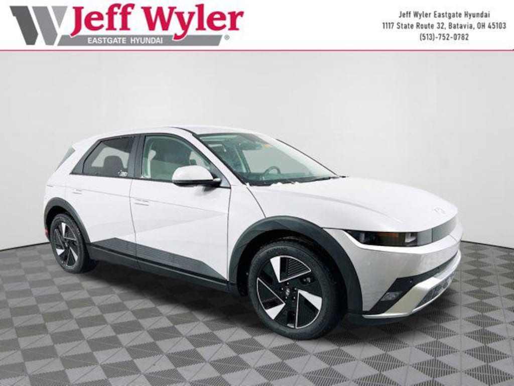 Cyber Gray 2026 Hyundai IONIQ 5 SEL Electric Motor AWD 1-Speed Automatic 110/87 City/Highway MPG Jeff Wyler Eastgate Auto Mall is pumped up to offer this terrific-looking 2026 Hyundai IONIQ 5 SEL in Cyber Gray. Well equipped with: Option Group 01, 4-Wheel Disc Brakes, 6 Speakers, ABS brakes, Air Conditioning, Alloy wheels, AM/FM radio: SiriusXM, Apple CarPlay & Android Auto, Auto High-beam Headlights, Auto-dimming Rear-View mirror, Automatic temperature control, Bodyside moldings, Brake assist, Bumpers: body-color, Carpeted Floor Mats, Delay-off headlights, Driver door bin, Driver vanity mirror, Dual front impact airbags, Dual front side impact airbags, Electronic Stability Control, Emergency communication system: None, First Aid Kit, Four wheel independent suspension, Front anti-roll bar, Front Bucket Seats, Front Center Armrest w/Storage, Front dual zone A/C, Front reading lights, Fully automatic headlights, Garage door transmitter: HomeLink, H-Tex Artificial Leather Seating Surfaces, harman/kardon® Speakers, Heated door mirrors, Heated Front Bucket Seats, Heated front seats, Illuminated entry, Low tire pressure warning, Navigation System, Occupant sensing airbag, Outside temperature display, Overhead airbag, Overhead console, Panic alarm, Passenger door bin, Passenger vanity mirror, Power door mirrors, Power driver seat, Power Liftgate, Power passenger seat, Power steering, Power windows, Radio: AM/FM/SiriusXM/HD Audio System, Rear anti-roll bar, Rear reading lights, Rear seat center armrest, Rear side impact airbag, Rear window defroster, Rear window wiper, Remote keyless entry, Security system, Speed control, Speed-sensing steering, Split folding rear seat, Spoiler, Steering wheel mounted audio controls, Telescoping steering wheel, Tilt steering wheel, Traction control, Trip computer, Turn signal indicator mirrors, Up Seatback Cargo Mat, Variably intermittent wipers, and Wheels: 19" x 7.5J Alloy. 110/87 City/Highway MPG