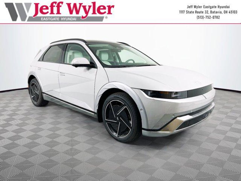 Cyber Gray 2026 Hyundai IONIQ 5 Limited Electric Motor AWD 1-Speed Automatic 110/87 City/Highway MPG Jeff Wyler Eastgate Auto Mall is pumped up to offer this superb-looking 2026 Hyundai IONIQ 5 Limited in Cyber Gray. Well equipped with: Option Group 01, 4-Wheel Disc Brakes, 8 Speakers, ABS brakes, Air Conditioning, All Season Fitted Liners, Alloy wheels, AM/FM radio: SiriusXM, Apple CarPlay & Android Auto, Auto High-beam Headlights, Auto-dimming Rear-View mirror, Automatic temperature control, Bodyside moldings, Brake assist, Bumpers: body-color, Cargo Net, Carpeted Floor Mats, Delay-off headlights, Driver door bin, Driver vanity mirror, Dual front impact airbags, Dual front side impact airbags, Electronic Stability Control, Emergency communication system: None, First Aid Kit, Four wheel independent suspension, Front anti-roll bar, Front Bucket Seats, Front Center Armrest w/Storage, Front dual zone A/C, Front reading lights, Fully automatic headlights, Garage door transmitter: HomeLink, H-Tex Artificial Leather Seating Surfaces, Heads-Up Display, Heated and Ventilated Front Bucket Seats, Heated door mirrors, Heated front seats, Heated rear seats, Heated steering wheel, Illuminated entry, Low tire pressure warning, Memory seat, Mudguards, Navigation System, Occupant sensing airbag, Outside temperature display, Overhead airbag, Overhead console, Panic alarm, Passenger door bin, Passenger vanity mirror, Power door mirrors, Power driver seat, Power Liftgate, Power passenger seat, Power steering, Power windows, Radio: AM/FM/SiriusXM/HD Audio System, Rain sensing wipers, Rear anti-roll bar, Rear reading lights, Rear seat center armrest, Rear side impact airbag, Rear window defroster, Rear window wiper, Remote keyless entry, Security system, Severe Weather Kit, Speed control, Speed-sensing steering, Split folding rear seat, Spoiler, Steering wheel mounted audio controls, Telescoping steering wheel, Tilt steering wheel, Traction control, Trip computer, Turn signal indicator mirrors, Variably intermittent wipers, Ventilated front seats, and Wheels: 20" x 8.5J Alloy. 110/87 City/Highway MPG