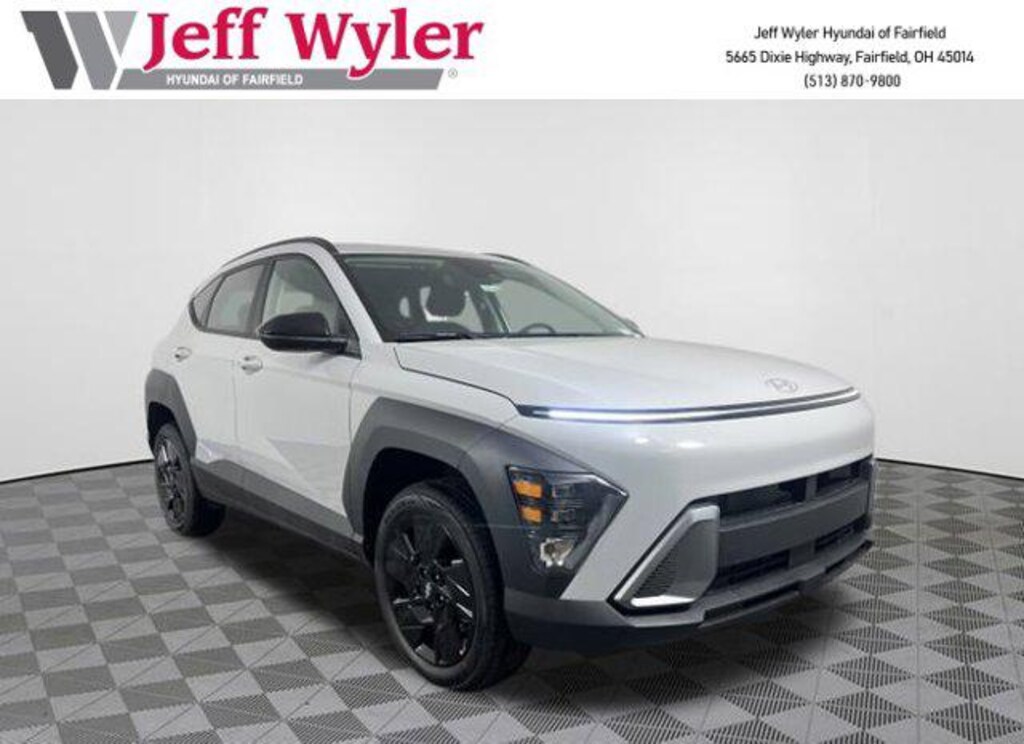 2026 Hyundai Kona Cyber Gray Metallic SEL Sport AWD CVT 2.0L I4 DOHC 16V Android Auto, Apple CarPlay, CALL NOW FOR YOUR VIP APPOINTMENT 513-870-9800, FULLY SERVICED w/RECORDS, GUARANTEED FINANCING!! NO MATTER YOUR SITUATION WE CAN GET AN APPROVAL!!, THE #1 Volume dealer in the region! Come see why for yourself Today!!, WE PAY MORE FOR YOUR TRADE!!. 26/29 City/Highway MPG Jeff Wyler Hyundai of Fairfield is pleased to offer this terrific-looking 2026 Hyundai Kona SEL Sport in Cyber Gray Metallic. Well equipped with: Option Group 01, Android Auto, Apple CarPlay, CALL NOW FOR YOUR VIP APPOINTMENT 513-870-9800, FULLY SERVICED w/RECORDS, GUARANTEED FINANCING!! NO MATTER YOUR SITUATION WE CAN GET AN APPROVAL!!, THE #1 Volume dealer in the region! Come see why for yourself Today!!, WE PAY MORE FOR YOUR TRADE!!, 4-Wheel Disc Brakes, 6 Speakers, ABS brakes, Air Conditioning, Alloy wheels, AM/FM radio: SiriusXM, Apple CarPlay & Android Auto, Auto High-beam Headlights, Automatic temperature control, Brake assist, Bumpers: body-color, Cargo Net, Cargo Tray, Carpeted Floor Mats, Cloth Seat Trim, Delay-off headlights, Door Sill Plates, Driver door bin, Driver vanity mirror, Dual front impact airbags, Dual front side impact airbags, Electronic Stability Control, Emergency communication system: None, Exterior Parking Camera Rear, First Aid Kit, Four wheel independent suspension, Front anti-roll bar, Front Bucket Seats, Front Center Armrest, Front dual zone A/C, Front reading lights, Fully automatic headlights, Heated door mirrors, Heated Front Bucket Seats, Heated front seats, Illuminated entry, Leather steering wheel, Low tire pressure warning, Occupant sensing airbag, Outside temperature display, Overhead airbag, Panic alarm, Passenger door bin, Passenger vanity mirror, Power door mirrors, Power steering, Power windows, Radio: AM/FM/SiriusXM/HD Audio System, Rear anti-roll bar, Rear seat center armrest, Rear window defroster, Rear window wiper, Remote keyless entry, Security system, Severe Weather Kit, Speed control, Speed-sensing steering, Split folding rear seat, Spoiler, Steering wheel mounted audio controls, Tachometer, Telescoping steering wheel, Tilt steering wheel, Traction control, Trip computer, Variably intermittent wipers, and Wheels: 18" x 7.0J Black Alloy. Price includes: $1000 - Hyundai HMF Dealer Choice : $1000 discount and 5.39% APR for 24 months. $44.05 per $1000 financed. Available to well qualified buyers who finance through Hyundai Motor Finance. H704. Exp. 03/02/2026 $400 - College Graduate Program. Exp. 03/02/2026 $500 - Military Program. Exp. 03/02/2026