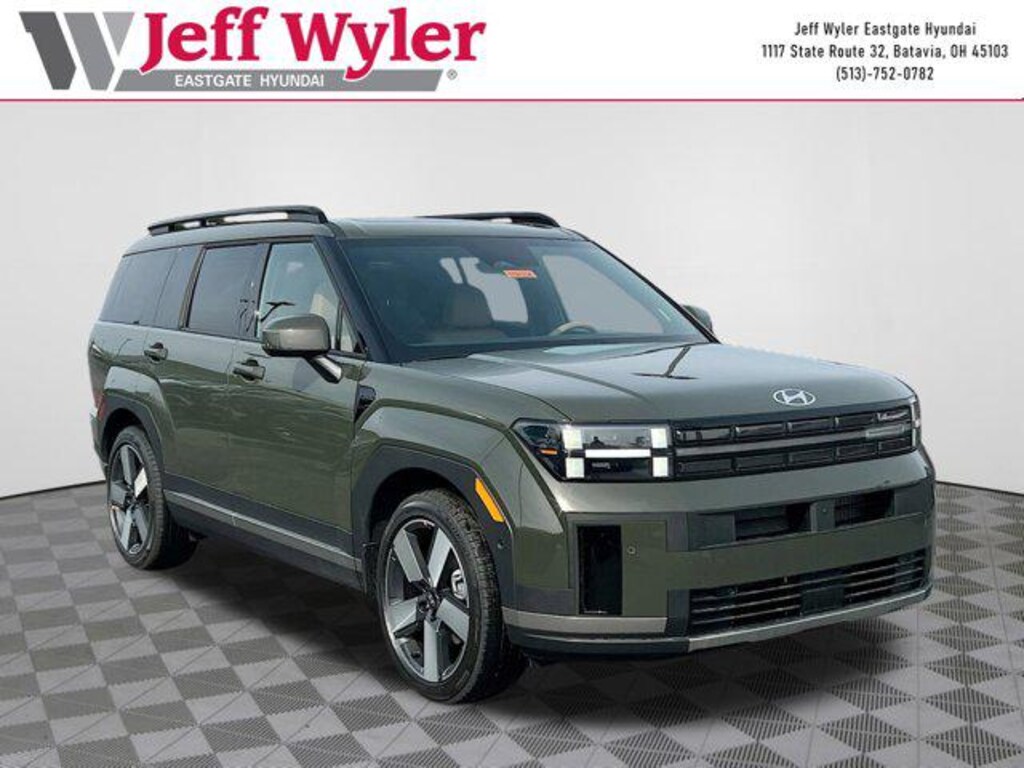 Priced below KBB Fair Purchase Price! Rockwood Green 2026 Hyundai Santa Fe Limited 2.5L I4 AWD 8-Speed Automatic with SHIFTRONIC 20/28 City/Highway MPG Jeff Wyler Eastgate Auto Mall is delighted to offer this terrific 2026 Hyundai Santa Fe Limited in Rockwood Green. Well equipped with: 12 Speakers, 3rd row seats: bench, 4-Wheel Disc Brakes, ABS brakes, Air Conditioning, All Season Fitted Liners, Alloy wheels, AM/FM radio: SiriusXM, Apple CarPlay & Android Auto, Auto High-beam Headlights, Auto-dimming Rear-View mirror, Automatic temperature control, Brake assist, Bumpers: body-color, Cargo Blocks, Cargo Cover/Screen, Cargo Net, Cargo Tray, Carpeted Floor Mats, Delay-off headlights, Driver door bin, Driver vanity mirror, Dual front impact airbags, Dual front side impact airbags, Electronic Stability Control, Emergency communication system, Exterior Parking Camera Rear, First Aid Kit, Four wheel independent suspension, Front anti-roll bar, Front Bucket Seats, Front Center Armrest, Front dual zone A/C, Front reading lights, Fully automatic headlights, Garage door transmitter: HomeLink, Heated and Ventilated Front Bucket Seats, Heated door mirrors, Heated front seats, Heated rear seats, Heated steering wheel, Illuminated entry, Knee airbag, Leather Seat Trim, Leather steering wheel, Low tire pressure warning, Memory seat, Mudguards, Navigation System, Occupant sensing airbag, Outside temperature display, Overhead airbag, Overhead console, Panic alarm, Passenger door bin, Passenger vanity mirror, Power door mirrors, Power driver seat, Power Liftgate, Power moonroof, Power passenger seat, Power steering, Power windows, Radio: AM/FM/HD Bose Premium Audio System, Rain sensing wipers, Rear anti-roll bar, Rear side impact airbag, Rear window defroster, Rear window wiper, Remote keyless entry, Security system, Speed control, Speed-sensing steering, Split folding rear seat, Spoiler, Steering wheel mounted audio controls, Tachometer, Telescoping steering wheel, Tilt steering wheel, Traction control, Trip computer, Turn signal indicator mirrors, Variably intermittent wipers, Ventilated front seats, and Wheels: 20" x 8.5J Alloy. 20/28 City/Highway MPG Price includes: $1700 - Retail Bonus Cash. Exp. 04/30/2026