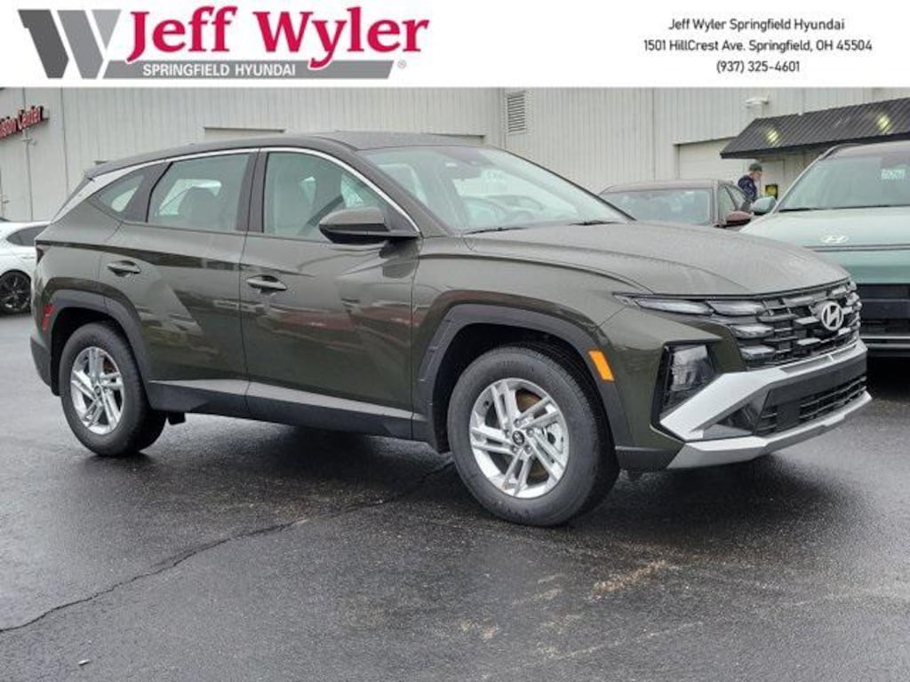 Jeff Wyler Springfield Auto Mall is excited to offer this handsome 2026 Hyundai Tucson SE in Rockwood Green. Well equipped with: Option Group 01, 17" x 7.0J Alloy Wheels, 4-Wheel Disc Brakes, 6 Speakers, ABS brakes, Air Conditioning, Alloy wheels, AM/FM radio: SiriusXM, Apple CarPlay & Android Auto, Auto High-beam Headlights, Brake assist, Bumpers: body-color, Cargo Net, Cargo Tray, Carpeted Floor Mats, Cloth Seat Trim, Delay-off headlights, Driver door bin, Driver vanity mirror, Dual front impact airbags, Dual front side impact airbags, Electronic Stability Control, Emergency communication system: None, First Aid Kit, Four wheel independent suspension, Front and Rear Mudguards, Front anti-roll bar, Front Bucket Seats, Front Center Armrest, Front reading lights, Fully automatic headlights, Illuminated entry, Low tire pressure warning, Occupant sensing airbag, Outside temperature display, Overhead airbag, Overhead console, Panic alarm, Passenger door bin, Passenger vanity mirror, Power door mirrors, Power steering, Power windows, Radio data system, Radio: AM/FM/HD Audio System, Rear anti-roll bar, Rear reading lights, Rear seat center armrest, Rear side impact airbag, Rear window defroster, Rear window wiper, Remote keyless entry, Security system, Speed control, Split folding rear seat, Spoiler, Steering wheel mounted audio controls, Tachometer, Telescoping steering wheel, Tilt steering wheel, Traction control, Trip computer, and Variably intermittent wipers. 25/33 City/Highway MPG 25/33 City/Highway MPGWyler Family First Package Includes: NanoCure Appearance Protection: Exterior & Interior Chemical Sealant Applied to Protect Against Environmental Hazards (7 Year Warranty Coverage). Pulse- Rear end Collision Avoidance System Theft Deterrent Strategy gives you 5 Years of Coverage against vehicle Theft, Offering up to a $5,000 benefit.
