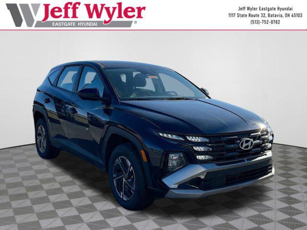 Deep Sea 2026 Hyundai Tucson Hybrid Blue 1.6L I4 DGI Hybrid Turbocharged DOHC 16V LEV3-SULEV30 AWD 6-Speed Automatic 38/38 City/Highway MPG Jeff Wyler Eastgate Auto Mall is pleased to offer this attractive-looking 2026 Hyundai Tucson Hybrid Blue in Deep Sea. Well equipped with: Option Group 01, 17" x 7.0J Alloy Wheels, 4-Wheel Disc Brakes, 6 Speakers, ABS brakes, Air Conditioning, All Season Fitted Liners, Alloy wheels, AM/FM radio: SiriusXM, Apple CarPlay & Android Auto, Auto High-beam Headlights, Automatic temperature control, Brake assist, Bumpers: body-color, Cargo Cover, Cargo Net, Cargo Tray, Carpeted Floor Mats, Delay-off headlights, Driver door bin, Driver vanity mirror, Dual front impact airbags, Dual front side impact airbags, Electronic Stability Control, Emergency communication system: None, First Aid Kit, Four wheel independent suspension, Front anti-roll bar, Front Bucket Seats, Front Center Armrest, Front dual zone A/C, Front reading lights, Fully automatic headlights, Illuminated entry, Low tire pressure warning, Occupant sensing airbag, Outside temperature display, Overhead airbag, Overhead console, Panic alarm, Passenger door bin, Passenger vanity mirror, Power door mirrors, Power steering, Power windows, Radio data system, Radio: AM/FM/HD Audio System, Rear anti-roll bar, Rear reading lights, Rear seat center armrest, Rear side impact airbag, Rear window defroster, Rear window wiper, Remote keyless entry, Security system, Speed control, Split folding rear seat, Spoiler, Stain and Odor Resistant Cloth Seat Trim, Steering wheel mounted audio controls, Tachometer, Telescoping steering wheel, Tilt steering wheel, Traction control, Trip computer, and Variably intermittent wipers. 38/38 City/Highway MPG