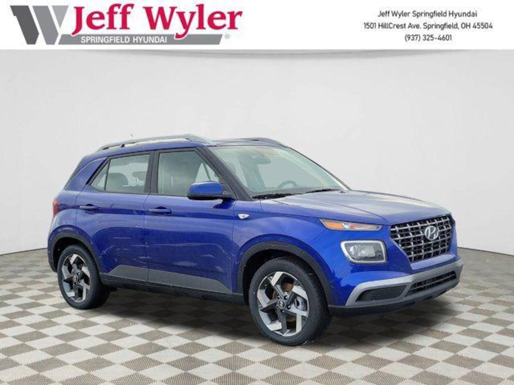 Jeff Wyler Springfield Auto Mall is very proud to offer this handsome 2026 Hyundai Venue SEL in Intense Blue. Well equipped with: Option Group 01, 4-Wheel Disc Brakes, 6 Speakers, 6.5J x 17" Alloy Wheels, ABS brakes, Air Conditioning, Alloy wheels, AM/FM radio, Apple CarPlay & Android Auto, Auto High-beam Headlights, Automatic temperature control, Brake assist, Bumpers: body-color, Cargo Net, Cargo Tray, Carpeted Floor Mats, Cloth Seat Trim, Delay-off headlights, Driver door bin, Driver vanity mirror, Dual front impact airbags, Dual front side impact airbags, Electronic Stability Control, First Aid Kit, Front anti-roll bar, Front Bucket Seats, Front Center Armrest, Front reading lights, Front wheel independent suspension, Fully automatic headlights, Heated door mirrors, Heated Front Bucket Seats, Heated front seats, Illuminated entry, Leather Shift Knob, Leather steering wheel, Low tire pressure warning, Occupant sensing airbag, Outside temperature display, Overhead airbag, Overhead console, Panic alarm, Passenger door bin, Passenger vanity mirror, Power door mirrors, Power moonroof, Power steering, Power windows, Radio: AM/FM/HD Display Audio, Rear Bumper Applique, Rear Seat Cup Holder, Rear window defroster, Rear window wiper, Remote keyless entry, Security system, Speed control, Speed-sensing steering, Split folding rear seat, Spoiler, Steering wheel mounted audio controls, Tachometer, Telescoping steering wheel, Tilt steering wheel, Traction control, Trip computer, and Variably intermittent wipers. 29/32 City/Highway MPG 29/32 City/Highway MPGWyler Family First Package Includes: NanoCure Appearance Protection: Exterior & Interior Chemical Sealant Applied to Protect Against Environmental Hazards (7 Year Warranty Coverage). Pulse- Rear end Collision Avoidance System Theft Deterrent Strategy gives you 5 Years of Coverage against vehicle Theft, Offering up to a $5,000 benefit. Available Incentives: $1,400 - Exp. 04/30/2026