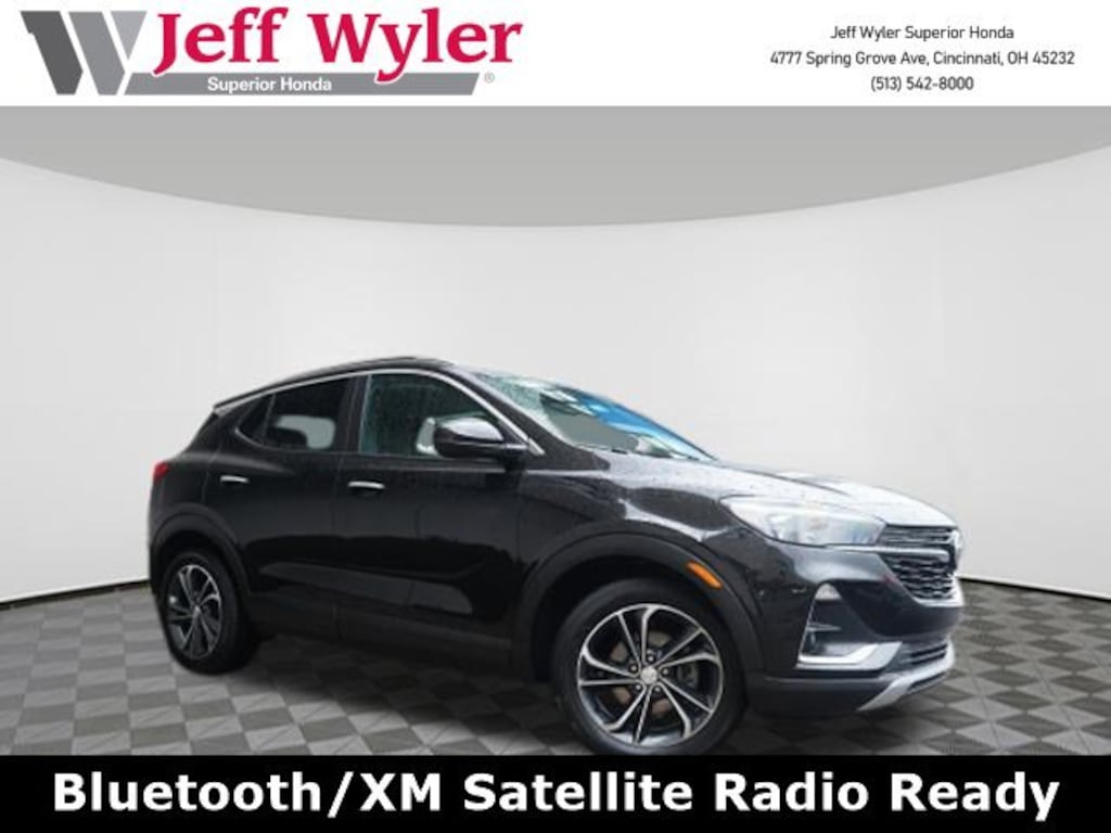Jeff Wyler Superior Honda is excited to offer this fantastic 2023 Buick Encore GX Select in Ebony Twilight Metallic. BLUETOOTH, CLEAN CARFAX...NO ACCIDENTS, REMAINDER OF FACTORY WARRANTY, RECENT SUPERIOR TRADE, and ONE OWNER Hands-Free Power Liftgate Package (Hands Free Power Liftgate), Preferred Equipment Group 1SD (Heated Driver & Front Passenger Seats), Encore GX Select, 4D Sport Utility, ECOTEC 1.2L Turbo, CVT, FWD, Ebony Twilight Metallic, Ebony With Ebony Interior Accents Cloth, 18" Machined Aluminum Wheels, 2 USB Ports w/Auxiliary Input Jack, 2-Way Power Driver Lumbar Control, 4-Way Manual Passenger Seat Adjuster, 4-Wheel Disc Brakes, 5.45 Final Drive Axle Ratio, 6 Speakers, 8-Way Power Driver Seat Adjuster, ABS brakes, Air Conditioning, Alloy wheels, AM/FM radio: SiriusXM, Auto High-beam Headlights, Automatic temperature control, Brake assist, Bumpers: body-color, Cloth w/Leatherette Seat Trim, Compass, Delay-off headlights, Driver door bin, Driver vanity mirror, Dual front impact airbags, Dual front side impact airbags, Electronic Stability Control, Emergency communication system: OnStar and Buick connected services capable, Enhanced Performance 6-Speaker System, Front anti-roll bar, Front Bucket Seats, Front Center Armrest, Front dual zone A/C, Front fog lights, Front License Plate Bracket, Front reading lights, Front wheel independent suspension, Fully automatic headlights, Heated door mirrors, Heated front seats, Illuminated entry, Knee airbag, Low tire pressure warning, Occupant sensing airbag, Outside temperature display, Overhead airbag, Overhead console, Panic alarm, Passenger door bin, Passenger vanity mirror, Power door mirrors, Power driver seat, Power steering, Power windows, Radio data system, Radio: 8" Diagonal Buick Infotainment System, Rear reading lights, Rear seat center armrest, Rear side impact airbag, Rear window defroster, Rear window wiper, Remote keyless entry, Ride & Handling Suspension, Security system, SiriusXM Radio, Speed control, Speed-sensing steering, Split folding rear seat, Spoiler, Steering wheel mounted audio controls, Tachometer, Telescoping steering wheel, Tilt steering wheel, Traction control, Trip computer, Variably intermittent wipers, and Wireless Apple CarPlay/Wireless Android Auto Our PRE-OWNED vehicles are put through a rigorous 167- POINT QUALITY ASSURANCE INSPECTION along with an average amount of over $1,400.00 SPENT to recondition each vehicle so we can be sure to deliver you the highest quality vehicle like you deserve! ***ONLINE PRICE DOES NOT INCLUDE WYLER FAMILY FIRST PACKAGE*** Stop by 4777 Spring Grove Ave. Road to see for yourself, or give us a call @ 283-209-1858 to schedule your test drive!Vehicle pricing includes all offers and incentives. Due to limited inventory, offers and pricing are all subject to change. Tax, Title, Tags and $387 doc fees are not included in vehicle price shown and must be paid by the purchaser. Doc fees vary by location. Financing w/approved credit. Mileage est. Based on current EPA estimates reflecting new EPA methods beginning w/ 2008 models. For comparison only. Do not compare to pre 2008 models. Actual mileage may vary based on how you drive and maintain your vehicle. Information on this site includes 3rd party data believed to be reliable, subject to change without notice. Jeff Wyler reserves the right to correct any errors and/or omissions in the compilation or presentation of this data and makes no representations express or implied to any prospective purchaser as to the vehicle's condition, specifications, history, equipment or equipment function, price or warranties. This vehicle may be subject to an open recall that has not been repaired. Please consult safercar.gov for more information on the current status. It is the responsibility of purchaser to confirm any data prior to purchase. Other than MSRP, all offers only apply to this vehicle and are subject to change. Vehicle prices are subject to change and all vehicles are sub