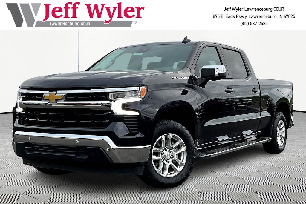 Jeff Wyler Chrysler Dodge Jeep of Lawrenceburg is honored to offer this reliable 2024 Chevrolet Silverado 1500 LT in Dark Ash Metallic. Convenience Package (10-Way Power Driver Seat w/Lumbar, 120-Volt Bed Mounted Power Outlet, 120-Volt Interior Power Outlet, Dual Rear USB Ports (Charge Only), Dual-Zone Automatic Climate Control, Heated Driver & Front Outboard Passenger Seats, Heated Steering Wheel, Keyless Open & Start, and Wrapped Steering Wheel), Convenience Package II (Hitch Guidance w/Hitch View, In-Vehicle Trailering System App, Integrated Trailer Brake Controller, Power Sliding Rear Window w/Rear Defogger, and Universal Home Remote), Max Trailering Package (Enhanced Cooling Radiator, Heavier Duty Rear Springs, and Increased RGAWR), Preferred Equipment Group 1LT (12.3" Multicolor Reconfigurable Digital Display, All-Star Edition, Auto-Locking Rear Differential, Bluetooth® For Phone, Chevrolet Connected Access Capable, Chrome Mirror Caps, Color-Keyed Carpeting Floor Covering, Deep-Tinted Glass, Electrical Steering Column Lock, Electronic Cruise Control, EZ Lift Power Lock & Release Tailgate, Front Frame-Mounted Black Recovery Hooks, Front Rubberized Vinyl Floor Mats, HD Rear Vision Camera, Heated Power-Adjustable Outside Mirrors, Inside Rear-View Mirror w/Tilt, LED Cargo Area Lighting, OnStar & Chevrolet Connected Services Capable, Power Front Windows w/Driver Express Up/Down, Power Front Windows w/Passenger Express Down, Power Rear Windows w/Express Down, Rear 60/40 Folding Bench Seat (Folds Up), Rear Rubberized-Vinyl Floor Mats, SiriusXM w/360L, Standard Tailgate, Steering Wheel Audio Controls, and Wi-Fi Hot Spot Capable), Protection Package (Chevytec Spray-On Black Bedliner and Rear Wheelhouse Liners), Remote Start Package (Electric Rear-Window Defogger, Remote Vehicle Starter System, and Theft Deterrent System (Unauthorized Entry)), Safety Package (HD Surround Vision, Perimeter Lighting, Rear Cross Traffic Braking, Rear Pedestrian Alert, Trailer Camera Provisions, Trailer Side Blind Zone Alert, and Ultrasonic Front & Rear Park Assist), Standard Suspension Package, Trailering Package (Hitch Guidance), 10-Speed Automatic, 4WD, Gideon/Very Dark Atmosphere Cloth, 220 Amp Alternator, 3.42 Rear Axle Ratio, 4-Wheel Disc Brakes, 40/20/40 Front Split-Bench Seat, 6 Speakers, 6-Speaker Audio System, ABS brakes, Air Conditioning, All-Weather Floor Liner (LPO), Alloy wheels, AM/FM radio: SiriusXM with 360L, Auto High-beam Headlights, Automatic Emergency Braking, Automatic temperature control, Auxiliary External Transmission Oil Cooler, Brake assist, Bumpers: chrome, Chrome Assist Steps, Cloth Seat Trim, Compass, Delay-off headlights, Driver door bin, Driver vanity mirror, Dual front impact airbags, Dual front side impact airbags, Electronic Stability Control, External Engine Oil Cooler, Following Distance Indicator, Forward Collision Alert, Front anti-roll bar, Front Center Armrest w/Storage, Front dual zone A/C, Front License Plate Kit, Front Pedestrian Braking, Front reading lights, Front wheel independent suspension, Fully automatic headlights, Hard-Folding Tonneau Cover (LPO), Heated door mirrors, Heated front seats, Heated steering wheel, Heavy-Duty Air Filter, Illuminated entry, IntelliBeam Automatic High Beam On/Off, Lane Keep Assist w/Lane Departure Warning, Low tire pressure warning, Multi-Flex Tailgate, Occupant sensing airbag, Outside temperature display, Overhead airbag, Overhead console, Panic alarm, Passenger door bin, Passenger vanity mirror, Power door mirrors, Power driver seat, Power steering, Power windows, Premium audio system: Chevrolet Infotainment 3 Premium, Radio data system, Radio: Chevrolet Infotainment 3 Premium System, Rear reading lights, Rear step bumper, Rear window defroster, Remote keyless entry, Security system, Speed control, Speed-sensing steering, Split folding rear seat, Steering wheel mounted audio controls, Tachometer, Telescoping steering wheel, Tilt steering wheel, Traction control, Trip co