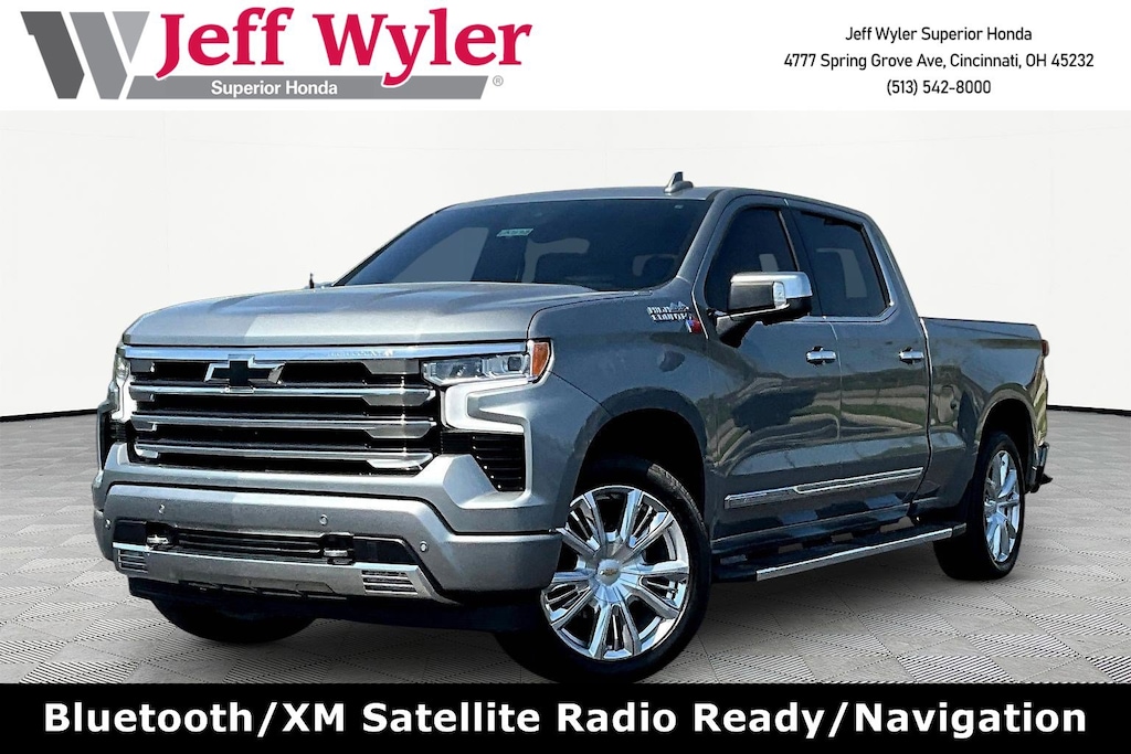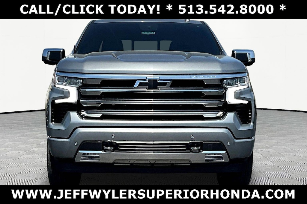 Jeff Wyler Superior Honda is proud to offer this stunning-looking 2024 Chevrolet Silverado 1500 High Country in Sterling Gray Metallic. High Capacity Suspension Package, Preferred Equipment Group 3LZ (10-Way Power Driver Seat w/Lumbar, 10-Way Power Passenger Seat Adjuster w/Lumbar, 12.3" Multicolor Reconfigurable Digital Display, 120-Volt Bed Mounted Power Outlet, 120-Volt Interior Power Outlet, 2 USB Data Ports, 2nd Row Heated Outboard Seats, Adaptive Cruise Control, Auto-Dimming Inside Rear-View Mirror, Auto-Locking Rear Differential, Bed View Camera, Bluetooth® For Phone, Body-Color Painted Mirror Caps, Chevrolet Connected Access Capable, Chevytec Spray-On Black Bedliner, Chrome Assist Steps, Chrome Recovery Hooks, Color-Keyed Carpeting Floor Covering, Deep-Tinted Glass, Driver Memory, Dual Exhaust w/Polished Outlets, Dual Rear USB Ports (Charge Only), Electric Rear-Window Defogger, Electrical Steering Column Lock, Floor Mounted Center Console, Front Carpeted Floor Mats, Front LED Fog Lamps, Front Rain-Sensing Wipers, HD Surround Vision, Heated Driver & Front Outboard Passenger Seats, Heated Steering Wheel, Hitch Guidance w/Hitch View, In-Vehicle Trailering System App, Integrated Trailer Brake Controller, Keyless Open & Start, LED Cargo Area Lighting, OnStar & Chevrolet Connected Services Capable, Outside Heated Power-Adjustable Mirrors, Perimeter Lighting, Power Front Passenger Windows w/Express Up/Down, Power Front Windows w/Driver Express Up/Down, Power Rear Windows w/Express Down, Power Sliding Rear Window w/Rear Defogger, Power Tailgate, Power Tilt & Telescoping Steering Column, Rear Carpeted Floor Mats, Rear Cross Traffic Braking, Rear Pedestrian Alert, Rear Wheelhouse Liners, Remote Vehicle Starter System, Safety Alert Seat, SiriusXM w/360L, Standard Tailgate, Steering Wheel Audio Controls, Theft Deterrent System (Unauthorized Entry), Trailer Camera Provisions, Trailer Side Blind Zone Alert, Ultrasonic Front & Rear Park Assist, Universal Home Remote, Ventilated Driver & Front Passenger Seats, Wi-Fi Hot Spot Capable, and Wrapped Steering Wheel), Technology Package (15" Diagonal Multicolor Head-Up Display and Rear Camera Mirror), Trailering Package (Hitch Guidance), Up-Level Rear Seat w/Storage Package, 170 Amp Alternator, 3.23 Rear Axle Ratio, 4-Wheel Disc Brakes, 7 Speakers, ABS brakes, Adaptive Ride Control Suspension, Air Conditioning, All-Weather Floor Liner (LPO), Alloy wheels, AM/FM radio: SiriusXM with 360L, Auto High-beam Headlights, Auto-dimming door mirrors, Auto-dimming Rear-View mirror, Automatic temperature control, Bodyside moldings, Brake assist, Bumpers: body-color, Compass, Delay-off headlights, Driver door bin, Driver vanity mirror, Dual front impact airbags, Dual front side impact airbags, Electronic Stability Control, Electronic Transmission Range Selector Shifter, Enhanced Automatic Emergency Braking, Following Distance Indicator, Forward Collision Alert, Front anti-roll bar, Front Black Bowtie Emblem (LPO), Front Bucket Seats, Front Center Armrest, Front dual zone A/C, Front fog lights, Front Pedestrian Braking, Front reading lights, Front wheel independent suspension, Fully automatic headlights, Garage door transmitter, Genuine wood console insert, Genuine wood dashboard insert, Genuine wood door panel insert, Heated door mirrors, Heated front seats, Heated rear seats, Heated steering wheel, Illuminated entry, IntelliBeam Automatic High Beam On/Off, Lane Keep Assist w/Lane Departure Warning, Low tire pressure warning, Memory seat, Occupant sensing airbag, Outside temperature display, Overhead airbag, Overhead console, Panic alarm, Passenger door bin, Passenger vanity mirror, Perforated Leather Seat Trim, Power door mirrors, Power driver seat, Power passenger seat, Power steering, Power windows, Premium audio system: Chevrolet Infotainment 3 Premium, Premium Bose 7-Speaker Sound System, Radio data system, Radio: Chevrolet Infotainment 3 Premium System, Rain sensing wipers, Rear reading lights, R