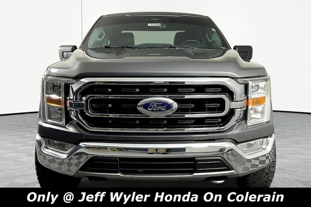 Jeff Wyler Honda of Colerain is proud to offer this outstanding 2021 Ford F-150 XLT in Gray Metallic. Well equipped with: Equipment Group 301A Mid (8-Way Power Driver's Seat w/Power Lumbar, 8" Productivity Screen in Instrument Cluster, Auto-Dimming Rear-View Mirror, Class IV Trailer Hitch Receiver, Dual Zone Automatic Temperature Control, Leather-Wrapped Steering Wheel, Power Glass Heated Sideview Mirrors, Radio: AM/FM SiriusXM w/360L, Rear Under-Seat Storage, SecuriCode Drivers Side Keyless-Entry Keypad, and SYNC 4 w/Enhanced Voice Recognition), Trailer Tow Package (Integrated Trailer Brake Controller and Pro Trailer Backup Assist), XLT Chrome Appearance Package (2-Bar Style Grille w/Chrome 2 Minor Bars, Chrome Door & Tailgate Handles w/Body-Color Bezel, Chrome Single-Tip Exhaust, Chrome Step Bars, and Wheels: 18" Chrome-Like PVD), 3.31 Axle Ratio, 4-Wheel Disc Brakes, 6 Speakers, ABS brakes, Air Conditioning, Alloy wheels, AM/FM radio, Auto High-beam Headlights, BoxLink, Brake assist, Bumpers: chrome, Cloth 40/20/40 Front Seat, Compass, Connected Built-In Navigation, Delay-off headlights, Driver door bin, Driver vanity mirror, Dual front impact airbags, Dual front side impact airbags, Electronic Stability Control, Emergency communication system: SYNC 4 911 Assist, Exterior Parking Camera Rear, Front anti-roll bar, Front Center Armrest w/Storage, Front fog lights, Front License Plate Bracket, Front reading lights, Front wheel independent suspension, Fully automatic headlights, Heated door mirrors, Illuminated entry, Low tire pressure warning, Occupant sensing airbag, Outside temperature display, Overhead airbag, Overhead console, Panic alarm, Passenger door bin, Passenger vanity mirror, Power door mirrors, Power steering, Power windows, Radio data system, Radio: AM/FM Stereo w/6 Speakers, Rear reading lights, Rear step bumper, Rear window defroster, Remote keyless entry, Security system, Speed control, Speed-sensing steering, Split folding rear seat, Steering wheel mounted audio controls, SYNC 4, Tachometer, Telescoping steering wheel, Tilt steering wheel, Traction control, Trip computer, Variably intermittent wipers, Voltmeter, and Wheels: 17" Silver Painted Aluminum.