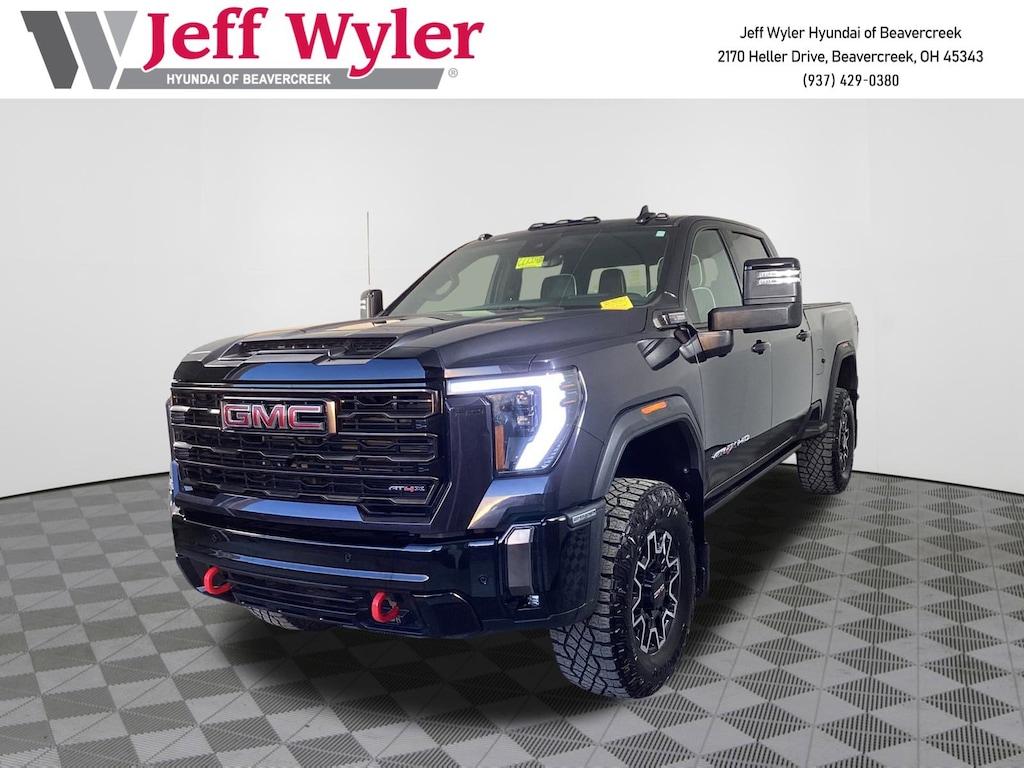 CARFAX One-Owner. Clean CARFAX. Jeff Wyler Hyundai of Beavercreek is pumped up to offer this outstanding 2024 GMC Sierra 2500HD AT4X in Titanium Rush Metallic. Well equipped with: Preferred Equipment Group 4SG (120-Volt Bed Mounted Power Outlet, 120-Volt Instrument Panel Power Outlet, 2 Charge-Only Rear USB Ports, 2 Charge/Data USB Ports Inside Center Console, 2 USB Ports, 2-Speed Active Transfer Case, Bed View Camera w/2 Trailer Camera Provisions, Bose Premium Series 12-Speaker System, Deep-Tinted Glass, Electric Rear-Window Defogger, Floor-Mounted Center Console, Front Prem Floor Liners w/Removable Carpet Insert, Front Rain-Sensing Wipers, Gloss Black Header Grille & Grille Insert Bars, GMC Connected Access Capable, HD Surround Vision, Heated 2nd Row Outboard Seats, Heated Driver & Front Outboard Passenger Seats, Hill Descent Control, Inside Rearview Auto-Dimming Rear Camera Mirror, Integrated Trailer Brake Controller, Keyless Open & Start, LED Cargo Area Lighting, LED Smoked Amber Roof Marker Lamps, Manual Tilt-Wheel/Telescoping Steering Column, Multicolor 15" Diagonal Head-Up Display, OnStar & GMC Connected Services Capable, Power Front Passenger Windows w/Express Up/Down, Power Sliding Rear Window w/Defogger, Power Sunroof, Push Button Start, Rear Cross Traffic Alert, Rear Prem Floor Liners w/Removable Carpet Insert, Rear Wheelhouse Liners, Remote Vehicle Starter System, Safety Alert Seat, SiriusXM w/360L, Spray-On Bedliner w/AT4 Logo, Steering Wheel Audio Controls, Trailer Cam Provisions & Trailer Viewing Software, Trailer Side Blind Zone Alert, Trailer Tire Pressure Monitor Sensors, Ultrasonic Front & Rear Park Assist, Unauthorized Entry Theft-Deterrent System, Universal Home Remote, Ventilated Driver & Front Passenger Seats, Wireless Charging, and Wireless Phone Projection), 12 Speakers, 16-Way Power Driver Seat Adjuster w/Lumbar, 16-Way Power Passenger Seat Adjuster w/Lumbar, 3.73 Rear Axle Ratio, 4-Wheel Disc Brakes, ABS brakes, Air Conditioning, Alloy wheels, AM/FM radio: SiriusXM with 360L, Apple CarPlay/Android Auto, Auto High-beam Headlights, Auto-dimming door mirrors, Auto-dimming Rear-View mirror, Automatic Emergency Braking, Automatic temperature control, Brake assist, Buckle to Drive, Compass, Delay-off headlights, Driver door bin, Driver Memory, Driver vanity mirror, Dual front impact airbags, Dual front side impact airbags, Electronic Stability Control, Emergency communication system: OnStar and GMC connected services capable, Following Distance Indicator, Forward Collision Alert, Front anti-roll bar, Front Bucket Seats, Front Center Armrest, Front dual zone A/C, Front fog lights, Front Pedestrian Braking, Front reading lights, Front wheel independent suspension, Full Grain Leather Seat Trim, Fully automatic headlights, Garage door transmitter, Gloss Black Door Handles, GMC MultiPro Tailgate Step Lights (LPO), Heads-Up Display, Heated door mirrors, Heated front seats, Heated rear seats, Heated steering wheel, Heavy-Duty 80 Amp Battery, Hitch Guidance w/Hitch View, Illuminated entry, In-Vehicle Trailering System App, IntelliBeam Automatic High Beam On/Off, Lane Departure Warning System, Leather steering wheel, Low tire pressure warning, Memory seat, Occupant sensing airbag, Off-Road Suspension, Outside temperature display, Overhead airbag, Overhead console, Panic alarm, Passenger door bin, Passenger vanity mirror, Pickup Box, Power door mirrors, Power driver seat, Power moonroof, Power passenger seat, Power steering, Power windows, Premium audio system: Premium GMC Infotainment System, Radio: AM/FM w/Premium GMC Infotainment System, Rain sensing wipers, Rear reading lights, Rear seat center armrest, Rear step bumper, Rear window defroster, Remote keyless entry, Security system, Speed control, Speed-sensing steering, Split folding rear seat, Steering wheel mounted audio controls, Tachometer, Telescoping steering wheel, Tilt steering wheel, Traction control, Trip computer, Turn signal indicator mirrors, Variab