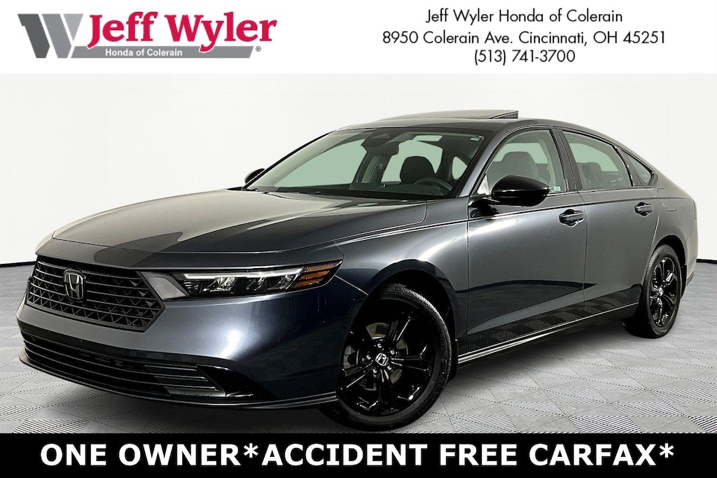 Jeff Wyler Honda of Colerain is proud to offer this outstanding 2025 Honda Accord SE in Meteorite Gray Metallic. Well equipped with: 4-Wheel Disc Brakes, 8 Speakers, ABS brakes, Adaptive Cruise Control: Adaptive Cruise Control (ACC) with Low-Speed Follow, Air Conditioning, Alloy wheels, AM/FM radio, Apple CarPlay/Android Auto, Auto High-beam Headlights, Automatic temperature control, Blind Spot Information (BSI) System warning, Brake assist, Bumpers: body-color, Compass, Delay-off headlights, Driver door bin, Driver vanity mirror, Dual front impact airbags, Dual front side impact airbags, Electronic Stability Control, Emergency communication system: HondaLink Assist, Exterior Parking Camera Rear, Fabric Seat Trim, Four wheel independent suspension, Front anti-roll bar, Front Bucket Seats, Front Center Armrest, Front dual zone A/C, Front reading lights, Fully automatic headlights, Heated door mirrors, Heated Front Bucket Seats, Heated front seats, Illuminated entry, Knee airbag, Lane departure: Lane Keeping Assist System (LKAS) active, Low tire pressure warning, Occupant sensing airbag, Outside temperature display, Overhead airbag, Overhead console, Panic alarm, Passenger door bin, Passenger vanity mirror, Power door mirrors, Power driver seat, Power moonroof, Power steering, Power windows, Radio data system, Radio: 180-Watt Audio System, Rear anti-roll bar, Rear reading lights, Rear seat center armrest, Rear side impact airbag, Rear window defroster, Remote keyless entry, Security system, Speed control, Speed-sensing steering, Speed-Sensitive Wipers, Split folding rear seat, Steering wheel mounted audio controls, Tachometer, Telescoping steering wheel, Tilt steering wheel, Traction control, Trip computer, Variably intermittent wipers, and Wheels: 17" x 7.5J Berlina Black.