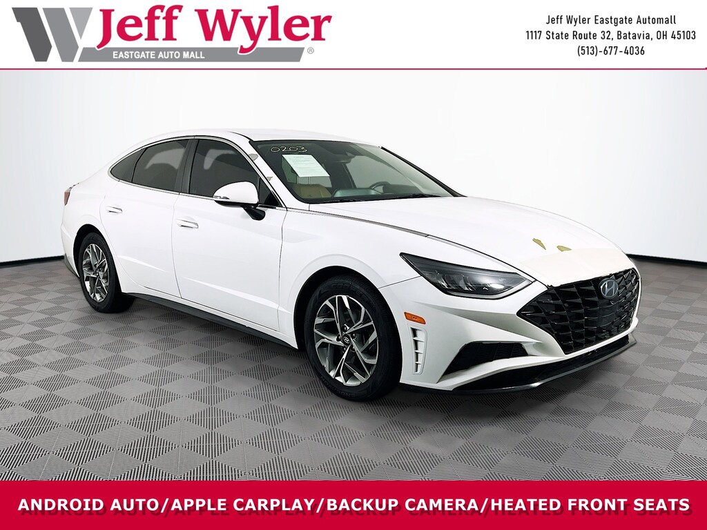 Jeff Wyler Eastgate Auto Mall is delighted to offer this stunning 2020 Hyundai Sonata SEL in Quartz White. Well equipped with: Blue Link Connected Care & Remote Package, Premium Package (12.3" LCD Instrument Cluster, 2nd Row Air Vent, 2nd Row USB Charge Port, Auto-Dimming Rearview Mirror w/HomeLink, Bose Premium Audio, Heated Steering Wheel, Hyundai Digital Key, Leather Seating Surfaces, Leather-Wrapped Steering Wheel, and Wireless Phone Charging), 4-Wheel Disc Brakes, 6 Speakers, ABS brakes, Air Conditioning, Alloy wheels, AM/FM radio: SiriusXM, Apple CarPlay & Android Auto, Auto High-beam Headlights, Automatic temperature control, Brake assist, Bumpers: body-color, Cargo Net, Carpeted Floor Mats, Delay-off headlights, Driver door bin, Driver vanity mirror, Dual front impact airbags, Dual front side impact airbags, Electronic Stability Control, Emergency communication system: Blue Link Connected Care (3-year subscription), Exterior Parking Camera Rear, First Aid Kit, Four wheel independent suspension, Front anti-roll bar, Front Bucket Seats, Front Center Armrest, Front dual zone A/C, Front reading lights, Fully automatic headlights, Heated door mirrors, Heated Front Bucket Seats, Heated front seats, Illuminated entry, Knee airbag, Low tire pressure warning, Occupant sensing airbag, Outside temperature display, Overhead airbag, Overhead console, Panic alarm, Passenger door bin, Passenger vanity mirror, Power door mirrors, Power driver seat, Power steering, Power windows, Premium Cloth Seating Surfaces, Radio data system, Radio: AM/FM/MP3/HD/SiriusXM Display Audio, Rear anti-roll bar, Rear seat center armrest, Rear side impact airbag, Rear window defroster, Remote keyless entry, Security system, Speed control, Speed-sensing steering, Speed-Sensitive Wipers, Split folding rear seat, Steering wheel mounted audio controls, Tachometer, Telescoping steering wheel, Tilt steering wheel, Traction control, Trip computer, Turn signal indicator mirrors, Variably intermittent wipers, and Wheels: 17 x 7.0J Aluminum Alloy. Awards: * JD Power Automotive Performance, Execution and Layout (APEAL) Study Ask about available certifications. Used vehicles 10 years of age or newer with less than 100,000 miles are eligible for the Wyler Assurance Program, but eligible vehicles must pass our reconditioning process and multi-point inspection. Provided the vehicle passes inspection, vehicles will be eligible for the 6 month/6,000 mile limited warranty. The 6 month/6,000 mile limited warranty is NOT available on AS-IS vehicles, wholesale vehicles, lease buyback/pass-thru vehicles or un-inspected vehicles. Note that this program can also apply to vehicles where the remaining factory coverage is less than 6 months or 6,000 miles. Please check the Federal Trade Commission (FTC) Buyers guide on the vehicle for full details as to whether or not warranty coverage may apply. Contact Dealer for additional details. The Wyler Assurance 6 month/6,000 Mile limited warranty ends 6 months from the date of the Retail Purchase Agreement (BUYERS ORDER) or when the vehicle's odometer registers 6,000 additional miles to the mileage listed on the BUYERS ORDER, whichever comes first. Your Deductible - The warranty holder on your contract pays the first $100 of each covered repair.