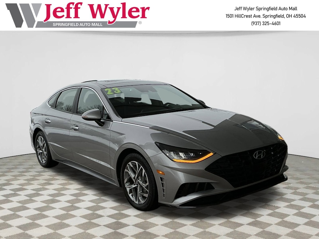 Jeff Wyler Springfield Auto Mall is very proud to offer this attractive 2023 Hyundai Sonata SEL in Curated Silver. Well equipped with: Convenience Package (12.3" LCD Instrument Cluster, 2nd Row Air Vent, 2nd Row USB Charge Port, Auto-Dimming Rear-View Mirror, Hyundai Digital Key, Leather-Wrapped Steering Wheel, LED Interior Lights, Option Group 02, Panoramic Sunroof, and Wireless Device Charging), Preferred Accessory Package (Cargo Block, Cargo Side Bins, and First Aid Kit), 17" x 7.0J Aluminum Alloy Wheels, 4-Wheel Disc Brakes, 6 Speakers, ABS brakes, Air Conditioning, Alloy wheels, AM/FM radio: SiriusXM, Apple CarPlay & Android Auto, Auto High-beam Headlights, Automatic temperature control, Brake assist, Bumpers: body-color, Carpeted Floor Mats, Delay-off headlights, Driver door bin, Driver vanity mirror, Dual front impact airbags, Dual front side impact airbags, Electronic Stability Control, Emergency communication system: Blue Link Connected Car Service (3-year complimentary subscription), Exterior Parking Camera Rear, Four wheel independent suspension, Front anti-roll bar, Front Bucket Seats, Front Center Armrest, Front dual zone A/C, Front reading lights, Fully automatic headlights, Heated door mirrors, Heated Front Bucket Seats, Heated front seats, Illuminated entry, Knee airbag, Low tire pressure warning, Navigation System, Occupant sensing airbag, Outside temperature display, Overhead airbag, Overhead console, Panic alarm, Passenger door bin, Passenger vanity mirror, Power door mirrors, Power driver seat, Power steering, Power windows, Premium Cloth Seating Surfaces, Radio data system, Radio: AM/FM/MP3/HD/SiriusXM Display Audio w/Nav, Rear anti-roll bar, Rear seat center armrest, Rear side impact airbag, Rear window defroster, Remote keyless entry, Security system, Speed control, Speed-sensing steering, Speed-Sensitive Wipers, Split folding rear seat, Steering wheel mounted audio controls, Tachometer, Telescoping steering wheel, Tilt steering wheel, Traction control, Trip computer, Trunk Cargo Net, Turn signal indicator mirrors, Variably intermittent wipers, and Wheel Locks. Ask about available certifications. Used vehicles 10 years of age or newer with less than 100,000 miles are eligible for the Wyler Assurance Program, but eligible vehicles must pass our reconditioning process and multi-point inspection. Provided the vehicle passes inspection, vehicles will be eligible for the 6 month/6,000 mile limited warranty. The 6 month/6,000 mile limited warranty is NOT available on AS-IS vehicles, wholesale vehicles, lease buyback/pass-thru vehicles or un-inspected vehicles. Note that this program can also apply to vehicles where the remaining factory coverage is less than 6 months or 6,000 miles. Please check the Federal Trade Commission (FTC) Buyers guide on the vehicle for full details as to whether or not warranty coverage may apply. Contact Dealer for additional details. The Wyler Assurance 6 month/6,000 Mile limited warranty ends 6 months from the date of the Retail Purchase Agreement (BUYERS ORDER) or when the vehicle's odometer registers 6,000 additional miles to the mileage listed on the BUYERS ORDER, whichever comes first. Your Deductible - The warranty holder on your contract pays the first $100 of each covered repair.