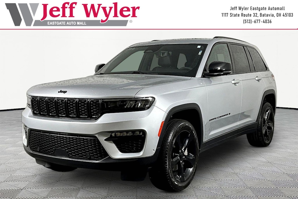 Jeff Wyler Eastgate Auto Mall is honored to offer this good-looking 2025 Jeep Grand Cherokee Limited in Silver Zynith. Well equipped with: Black Appearance Package (Gloss Black Exterior Accents and Wheels: 20" x 8.5" Gloss Black Painted Aluminum), Luxury Tech Group II (2nd-Row Manual Window Shades, Auto-Dimming Exterior Driver Mirror, Capri Leatherette with Axis II Seats, Front/Rear Doors and Liftgate with Passive Entry, Integrated Off-Road Camera, Intersection Collision Assist System, Memory Steering Column, ParkSense Front/Rear Park Assist with Stop, Power Tilt/Telescope Steering Column, Rain Sensitive Windshield Wipers, Rear Back-Up Camera Washer, Rearview Autodim Digital Display Mirror, Surround View Camera System, Ventilated Front Seats, and Wireless Charging Pad), Quick Order Package 22E, 4-Wheel Disc Brakes, 6 Speakers, ABS brakes, Active Noise Control System, Air Conditioning, Alloy wheels, AM/FM radio: SiriusXM with 360L, Anti-whiplash front head restraints, Audio memory, Auto High-beam Headlights, Automatic temperature control, Brake assist, Bumpers: body-color, Capri Leatherette Seats, Compass, Delay-off headlights, Driver door bin, Driver vanity mirror, Dual front impact airbags, Dual front side impact airbags, Dual-Pane Panoramic Sunroof, Electronic Stability Control, Emergency communication system, Four wheel independent suspension, Front anti-roll bar, Front Bucket Seats, Front Center Armrest w/Storage, Front dual zone A/C, Front fog lights, Front License Plate Bracket, Front reading lights, Fully automatic headlights, Garage door transmitter, Heated door mirrors, Heated front seats, Heated rear seats, Heated steering wheel, Illuminated entry, Knee airbag, Low tire pressure warning, Memory seat, Model Year Tracking, Navigation System, Normal Duty Suspension, Occupant sensing airbag, Outside temperature display, Overhead airbag, Overhead console, Panic alarm, ParkView Rear Back-Up Camera, Passenger door bin, Passenger vanity mirror, Power door mirrors, Power driver seat, Power Liftgate, Power passenger seat, Power steering, Power windows, Radio data system, Radio: Uconnect 5 Nav with 10.1" Display, Rear anti-roll bar, Rear reading lights, Rear window defroster, Rear window wiper, Remote keyless entry, Security system, Speed control, Speed-Sensitive Wipers, Split folding rear seat, Spoiler, Steering wheel mounted audio controls, Tachometer, Telescoping steering wheel, Tilt steering wheel, Traction control, Trip computer, Turn signal indicator mirrors, Variably intermittent wipers, Voltmeter, and Wheels: 18" x 8" Polished/Painted Aluminum. CARFAX One-Owner. Clean CARFAX. Ask about available certifications. Used vehicles 10 years of age or newer with less than 100,000 miles are eligible for the Wyler Assurance Program, but eligible vehicles must pass our reconditioning process and multi-point inspection. Provided the vehicle passes inspection, vehicles will be eligible for the 6 month/6,000 mile limited warranty. The 6 month/6,000 mile limited warranty is NOT available on AS-IS vehicles, wholesale vehicles, lease buyback/pass-thru vehicles or un-inspected vehicles. Note that this program can also apply to vehicles where the remaining factory coverage is less than 6 months or 6,000 miles. Please check the Federal Trade Commission (FTC) Buyers guide on the vehicle for full details as to whether or not warranty coverage may apply. Contact Dealer for additional details. The Wyler Assurance 6 month/6,000 Mile limited warranty ends 6 months from the date of the Retail Purchase Agreement (BUYERS ORDER) or when the vehicle's odometer registers 6,000 additional miles to the mileage listed on the BUYERS ORDER, whichever comes first. Your Deductible - The warranty holder on your contract pays the first $100 of each covered repair.