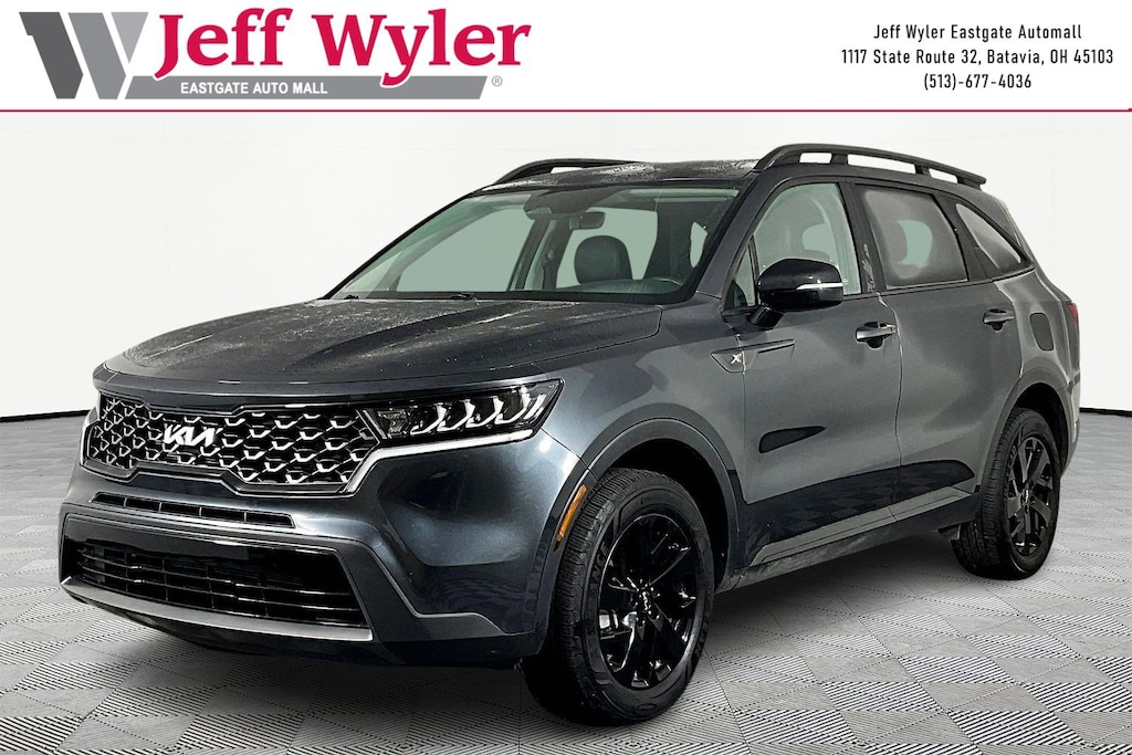 Jeff Wyler Eastgate Auto Mall is pumped up to offer this outstanding-looking 2022 Kia Sorento S in Gravity Gray. Well equipped with: 3rd row seats: split-bench, 4-Wheel Disc Brakes, 4.081 Axle Ratio, 6 Speakers, ABS brakes, Air Conditioning, Alloy wheels, AM/FM radio: SiriusXM, Apple CarPlay & Android Auto, Auto High-beam Headlights, Automatic temperature control, Brake assist, Bumpers: body-color, Carpeted Floor Mats, Delay-off headlights, Driver door bin, Driver vanity mirror, Dual front impact airbags, Dual front side impact airbags, Electronic Stability Control, Emergency communication system: UVO Link, Exterior Parking Camera Rear, Four wheel independent suspension, Front anti-roll bar, Front Bucket Seats, Front Center Armrest, Front dual zone A/C, Front reading lights, Fully automatic headlights, Heated door mirrors, Heated Front Bucket Seats, Heated front seats, Illuminated entry, Knee airbag, Leather Shift Knob, Leather steering wheel, Low tire pressure warning, Navigation System, Occupant sensing airbag, Outside temperature display, Overhead airbag, Overhead console, Panic alarm, Passenger door bin, Passenger vanity mirror, Power door mirrors, Power driver seat, Power steering, Power windows, Radio data system, Radio: AM/FM Audio System, Rear air conditioning, Rear anti-roll bar, Rear reading lights, Rear seat center armrest, Rear window defroster, Rear window wiper, Remote keyless entry, Roof rack: rails only, Security system, Smart Key w/ Push Button and Remote Start, Speed control, Speed-sensing steering, Split folding rear seat, Spoiler, Steering wheel mounted audio controls, SynTex Artificial Leather Seat Trim, Tachometer, Telescoping steering wheel, Tilt steering wheel, Traction control, Trip computer, Turn signal indicator mirrors, Variably intermittent wipers, and Wheels: 7.5J x 18" Gloss Black Alloy. CARFAX One-Owner. Ask about available certifications. Used vehicles 10 years of age or newer with less than 100,000 miles are eligible for the Wyler Assurance Program, but eligible vehicles must pass our reconditioning process and multi-point inspection. Provided the vehicle passes inspection, vehicles will be eligible for the 6 month/6,000 mile limited warranty. The 6 month/6,000 mile limited warranty is NOT available on AS-IS vehicles, wholesale vehicles, lease buyback/pass-thru vehicles or un-inspected vehicles. Note that this program can also apply to vehicles where the remaining factory coverage is less than 6 months or 6,000 miles. Please check the Federal Trade Commission (FTC) Buyers guide on the vehicle for full details as to whether or not warranty coverage may apply. Contact Dealer for additional details. The Wyler Assurance 6 month/6,000 Mile limited warranty ends 6 months from the date of the Retail Purchase Agreement (BUYERS ORDER) or when the vehicle's odometer registers 6,000 additional miles to the mileage listed on the BUYERS ORDER, whichever comes first. Your Deductible - The warranty holder on your contract pays the first $100 of each covered repair.