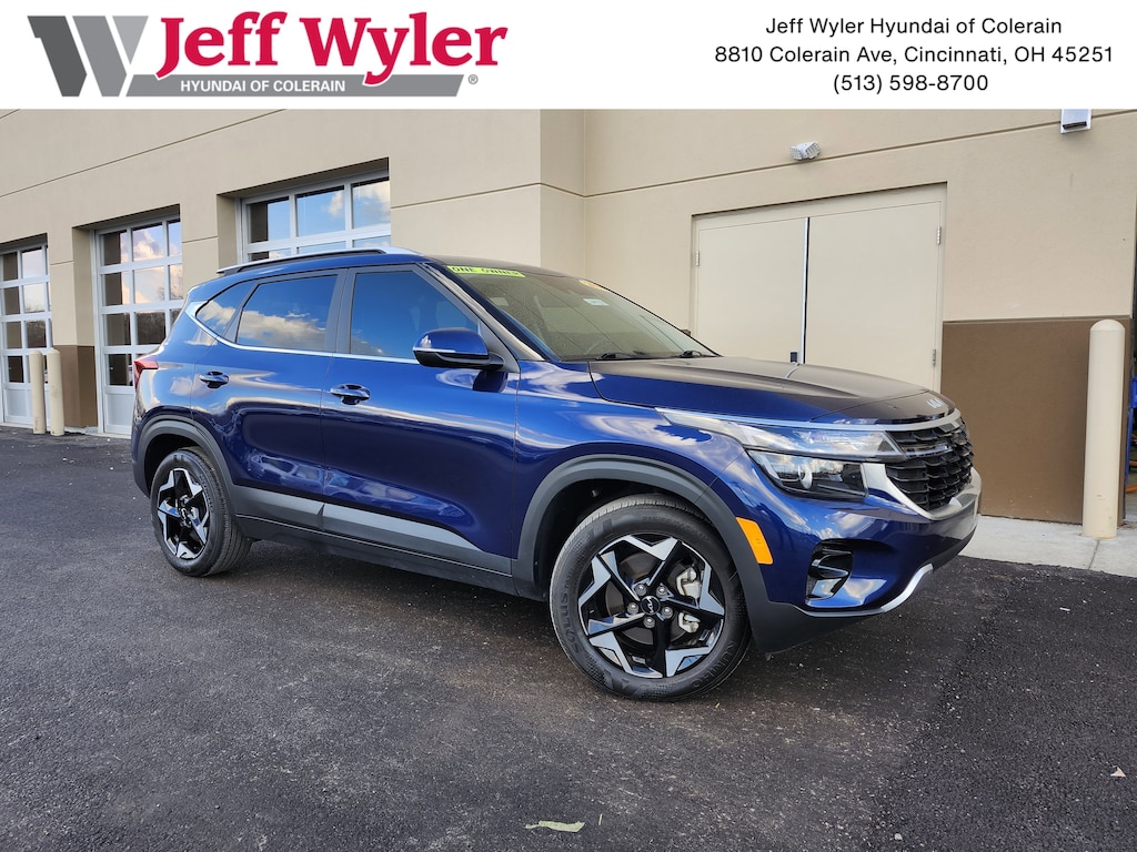 Jeff Wyler Superior Hyundai is pumped up to offer this good-looking 2024 Kia Seltos EX in Dark Ocean Blue. Well equipped with: 4-Wheel Disc Brakes, 6 Speakers, 6.052 Axle Ratio, ABS brakes, Air Conditioning, Alloy wheels, AM/FM radio: SiriusXM, Apple CarPlay & Android Auto, Auto High-beam Headlights, Automatic temperature control, Brake assist, Bumpers: body-color, Carpet Floor Mats, Delay-off headlights, Driver door bin, Driver vanity mirror, Dual front impact airbags, Dual front side impact airbags, Electronic Stability Control, Emergency communication system: 911 Connect, Exterior Parking Camera Rear, Four wheel independent suspension, Front anti-roll bar, Front Bucket Seats, Front Center Armrest, Front fog lights, Front reading lights, Fully automatic headlights, Heated door mirrors, Heated Front Bucket Seats, Heated front seats, Illuminated entry, Illuminated Scuff Plates, Leather Shift Knob, Leather steering wheel, Low tire pressure warning, Navigation System, Occupant sensing airbag, Outside temperature display, Overhead airbag, Overhead console, Panic alarm, Passenger door bin, Passenger vanity mirror, Power door mirrors, Power driver seat, Power moonroof, Power steering, Power windows, Puddle Lamp, Radio: AM/FM/HD/Satellite Display System w/Navigation, Rear seat center armrest, Rear window defroster, Rear window wiper, Remote keyless entry, Security system, Sofino Premium Leatherette Seat Trim, Speed control, Speed-sensing steering, Split folding rear seat, Spoiler, Steering wheel mounted audio controls, Tachometer, Telescoping steering wheel, Tilt steering wheel, Traction control, Trip computer, Turn signal indicator mirrors, Variably intermittent wipers, and Wheels: 17" Alloy w/Machined Finish. CARFAX One-Owner. Clean CARFAX. This sales price excludes tax, title, and dealer fees. While every reasonable effort is made to ensure the accuracy of this information, we are not responsible for any errors or omissions contained on these pages. Used vehicles 10 years of age or newer with less than 100,000 miles are eligible for the Wyler Assurance Program, but eligible vehicles must pass our reconditioning process and multi-point inspection. Provided the vehicle passes inspection, vehicles will be eligible for the 6 month/6,000 mile limited warranty. The 6 month/6,000 mile limited warranty is NOT available on AS-IS vehicles, wholesale vehicles, lease buyback/pass-thru vehicles or un-inspected vehicles. Note that this program can also apply to vehicles where the remaining factory coverage is less than 6 months or 6,000 miles. Please check the Federal Trade Commission (FTC) Buyers guide on the vehicle for full details as to whether or not warranty coverage may apply. Contact Dealer for additional details. The Wyler Assurance 6 month/6,000 Mile limited warranty ends 6 months from the date of the Retail Purchase Agreement (BUYERS ORDER) or when the vehicle's odometer registers 6,000 additional miles to the mileage listed on the BUYERS ORDER, whichever comes first.Your Deductible - The warranty holder on your contract pays the first $100 of each covered repair.