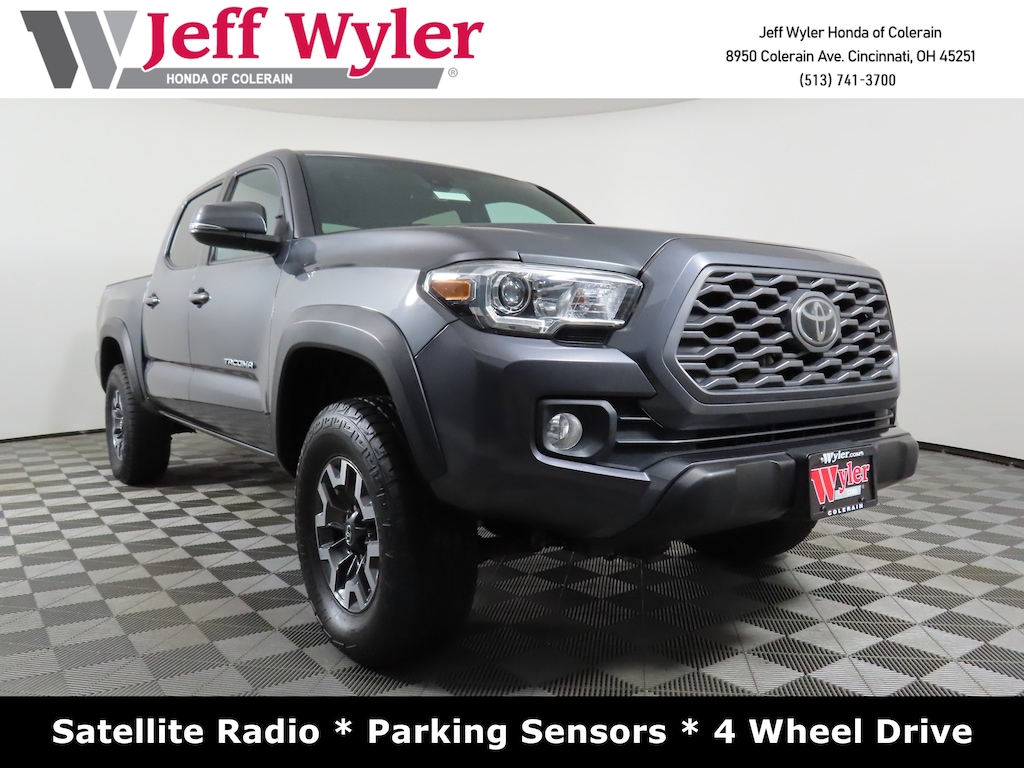 Jeff Wyler Honda of Colerain is very proud to offer this good-looking 2021 Toyota Tacoma TRD Off-Road in Silver Sky Metallic. Well equipped with: ABS brakes, Alloy wheels, Electronic Stability Control, Front dual zone A/C, Heated door mirrors, Illuminated entry, Low tire pressure warning, Remote keyless entry, Traction control, 120V/400W Deck Mounted AC Power, 6 Speakers, Air Conditioning, AM/FM radio: SiriusXM, Anti-whiplash front head restraints, Apple CarPlay/Android Auto, Auto High-beam Headlights, Auto-dimming Rear-View mirror, Automatic temperature control, Black Overfenders, Brake assist, Bumpers: body-color, Driver door bin, Dual front impact airbags, Dual front side impact airbags, Emergency communication system: Safety Connect with 1-year trial, Engine Immobilizer, Exterior Parking Camera Rear, Fabric Seat Trim (FD), Front anti-roll bar, Front Bucket Seats, Front Center Armrest, Front fog lights, Front reading lights, Front Seats, Front wheel independent suspension, Knee airbag, Leather Shift Knob, Occupant sensing airbag, Outside temperature display, Overhead airbag, Overhead console, Panic alarm, Passenger door bin, Power door mirrors, Power driver seat, Power Sliding Rear Window w/Privacy Glass, Power steering, Power windows, Radio: AM/FM Radio, Rear step bumper, Security system, Speed control, Speed-sensing steering, Split folding rear seat, Steering wheel mounted audio controls, Tachometer, Telescoping steering wheel, Tilt steering wheel, Trip computer, Turn signal indicator mirrors, Variably intermittent wipers, and Wheels: 16" x 7J Machined Contrast Alloy.