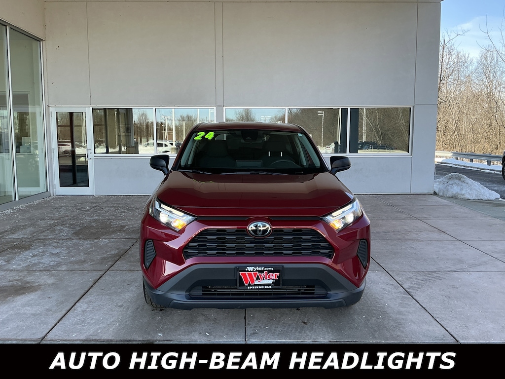Jeff Wyler Springfield Auto Mall is pleased to offer this attractive 2024 Toyota RAV4 LE in Red. Well equipped with: 17" Steel Wheels, 4-Wheel Disc Brakes, 6 Speakers, ABS brakes, Air Conditioning, AM/FM radio: SiriusXM, Auto High-beam Headlights, Axle Ratio: 3.177, Brake assist, Bumpers: body-color, Driver door bin, Driver vanity mirror, Dual front impact airbags, Dual front side impact airbags, Electronic Stability Control, Emergency communication system: Safety Connect (10-year trial), Exterior Parking Camera Rear, Fabric Seat Trim, Four wheel independent suspension, Front anti-roll bar, Front Bucket Seats, Front Center Armrest, Front reading lights, Illuminated entry, Knee airbag, Low tire pressure warning, Occupant sensing airbag, Outside temperature display, Overhead airbag, Overhead console, Panic alarm, Passenger door bin, Passenger vanity mirror, Power door mirrors, Power steering, Power windows, Radio data system, Radio: AM/FM/XM Audio System, Rear anti-roll bar, Rear seat center armrest, Rear window defroster, Rear window wiper, Remote keyless entry, Speed control, Speed-sensing steering, Split folding rear seat, Spoiler, Steering wheel mounted audio controls, Tachometer, Telescoping steering wheel, Tilt steering wheel, Traction control, and Trip computer. Ask about available certifications. Used vehicles 10 years of age or newer with less than 100,000 miles are eligible for the Wyler Assurance Program, but eligible vehicles must pass our reconditioning process and multi-point inspection. Provided the vehicle passes inspection, vehicles will be eligible for the 6 month/6,000 mile limited warranty. The 6 month/6,000 mile limited warranty is NOT available on AS-IS vehicles, wholesale vehicles, lease buyback/pass-thru vehicles or un-inspected vehicles. Note that this program can also apply to vehicles where the remaining factory coverage is less than 6 months or 6,000 miles. Please check the Federal Trade Commission (FTC) Buyers guide on the vehicle for full details as to whether or not warranty coverage may apply. Contact Dealer for additional details. The Wyler Assurance 6 month/6,000 Mile limited warranty ends 6 months from the date of the Retail Purchase Agreement (BUYERS ORDER) or when the vehicle's odometer registers 6,000 additional miles to the mileage listed on the BUYERS ORDER, whichever comes first. Your Deductible - The warranty holder on your contract pays the first $100 of each covered repair.